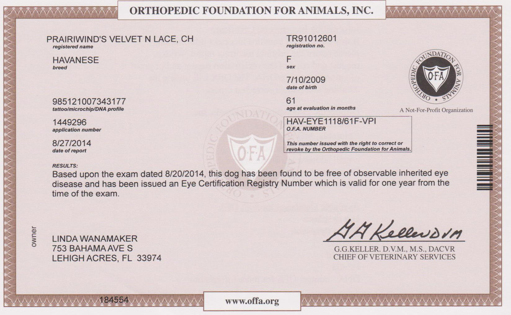 Ch Prairiwind's Velvet N Lace
